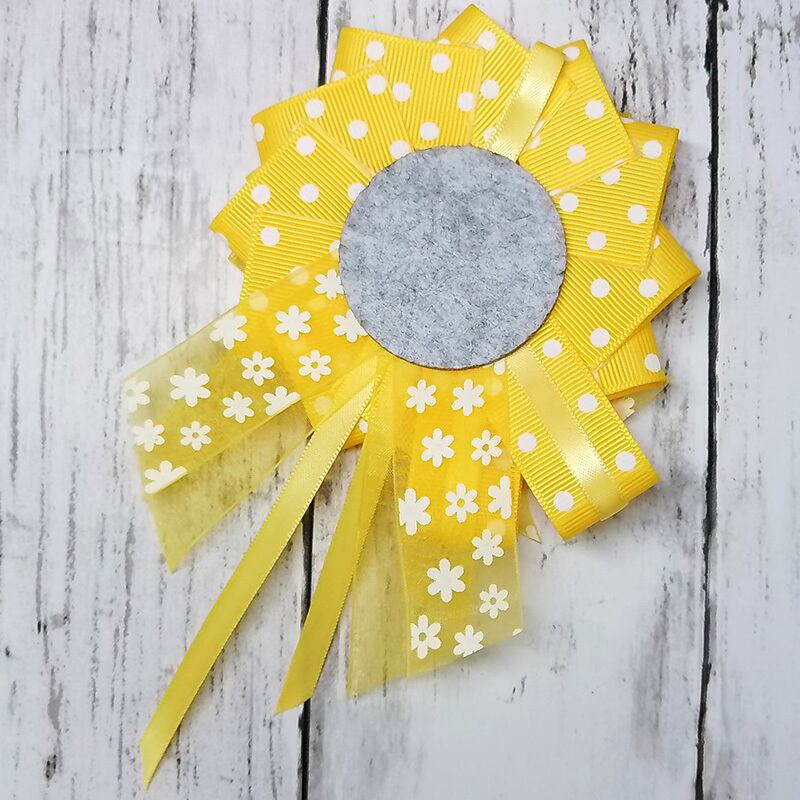 50mm程度のサイズの缶バッチ(裏が安全ピンのタイプのもの向け)をセットしやすいように作成したロゼットです。