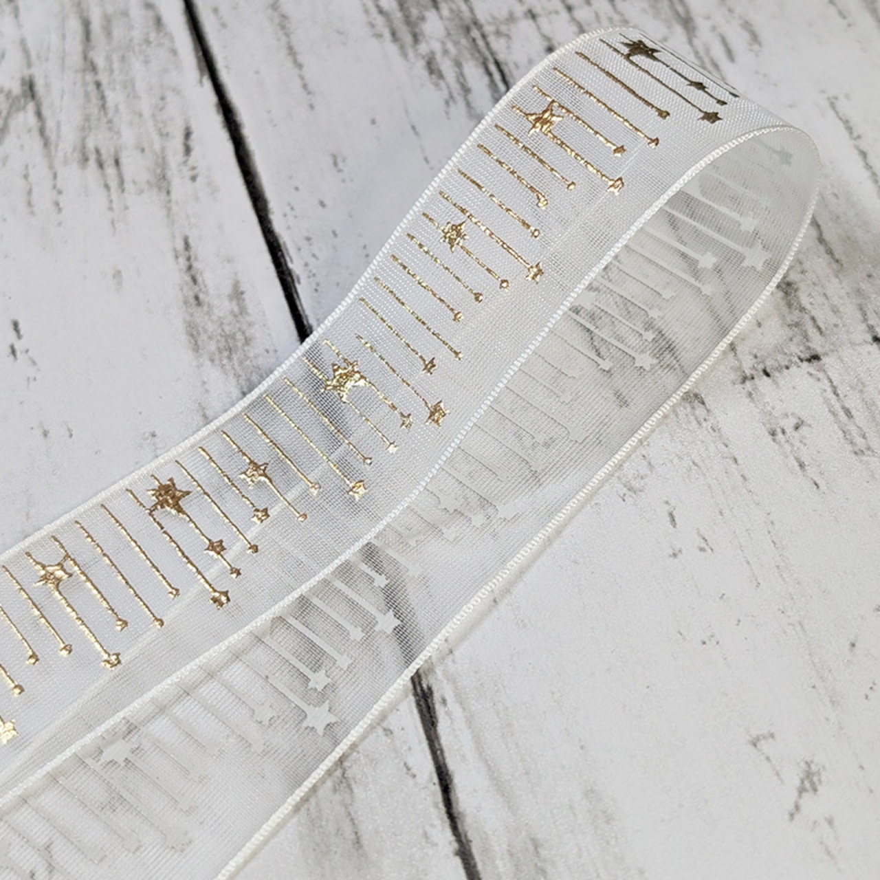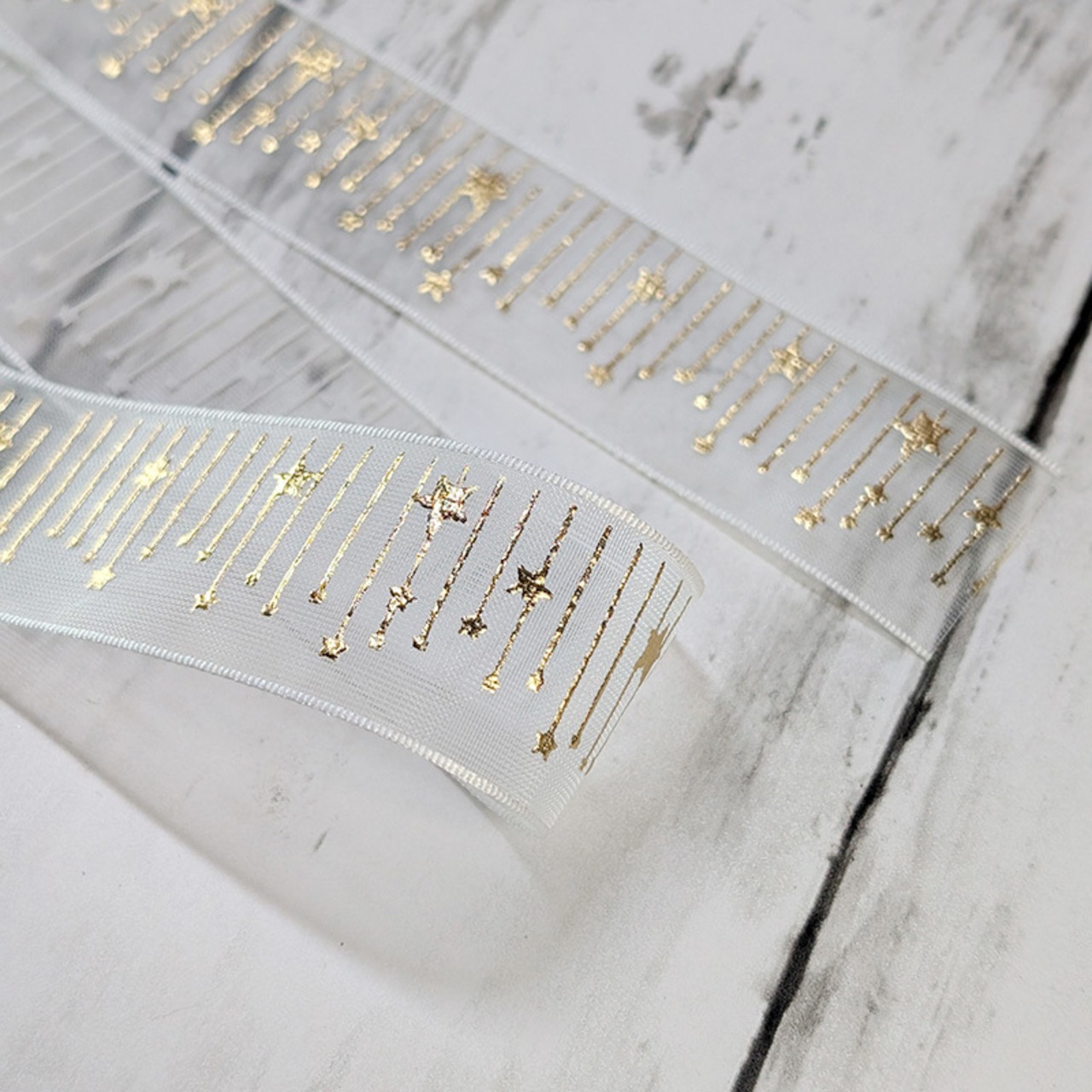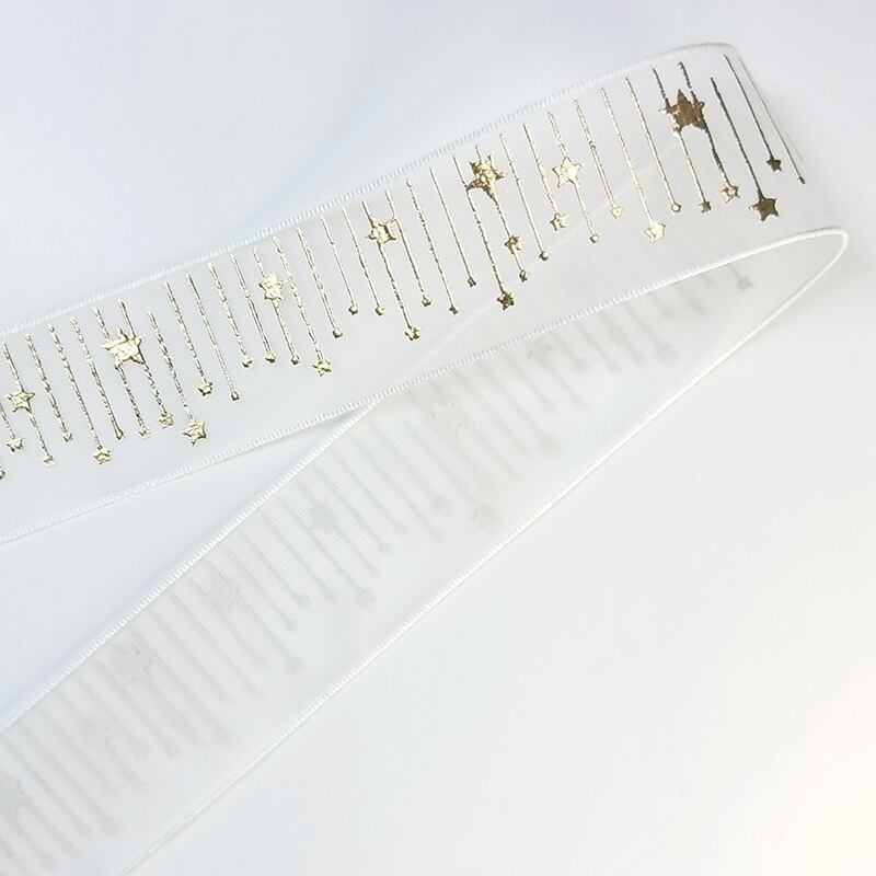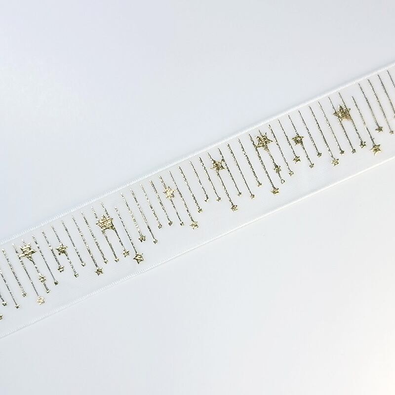 箔押しオーガーンジーリボン・星のカーテン/2.5cm幅